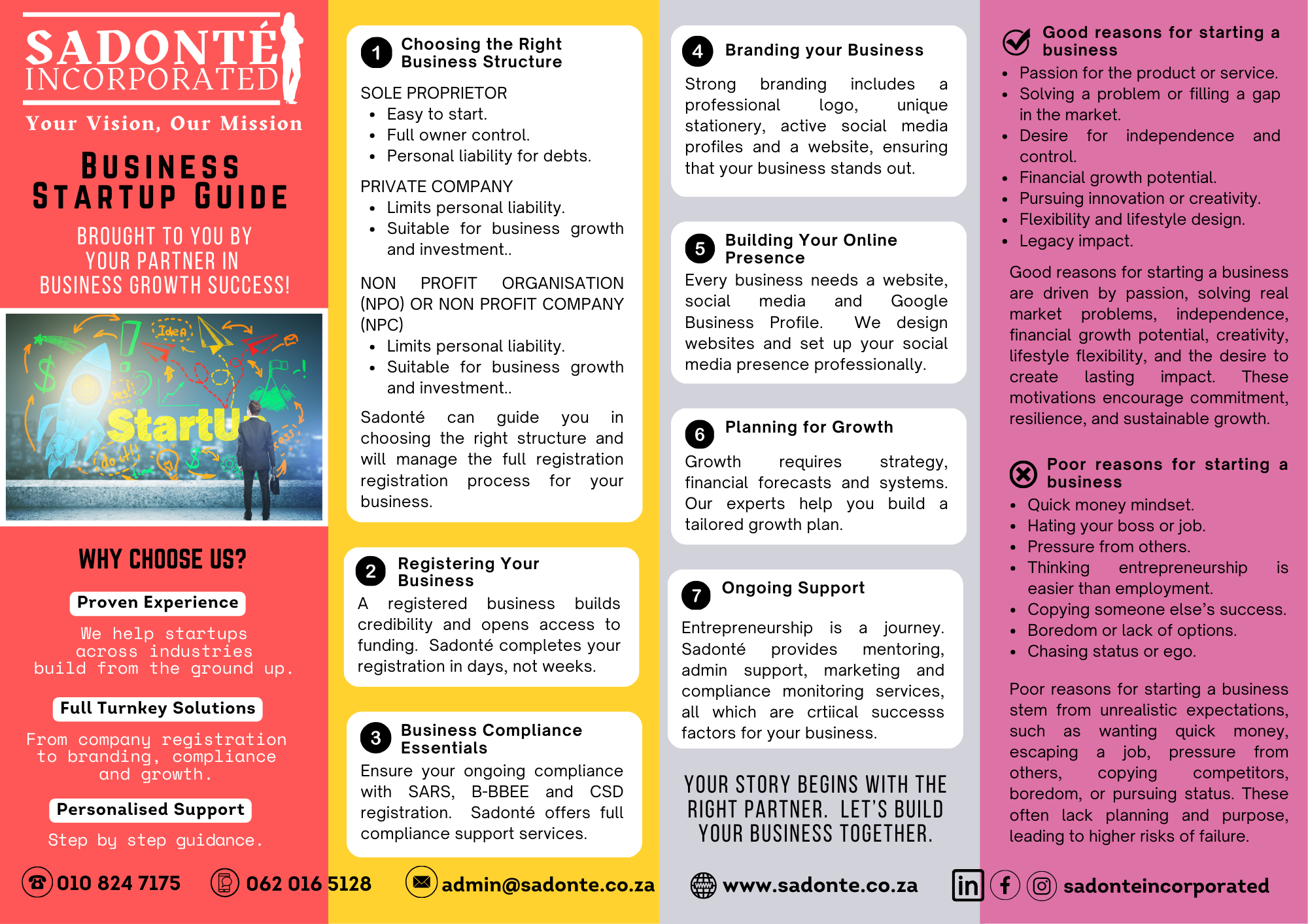 Whether you're registering your first business, need help managing daily admin, or want a fresh new website, Sadonté is here to support your success by lightening your back-office burden so you can focus on growth.